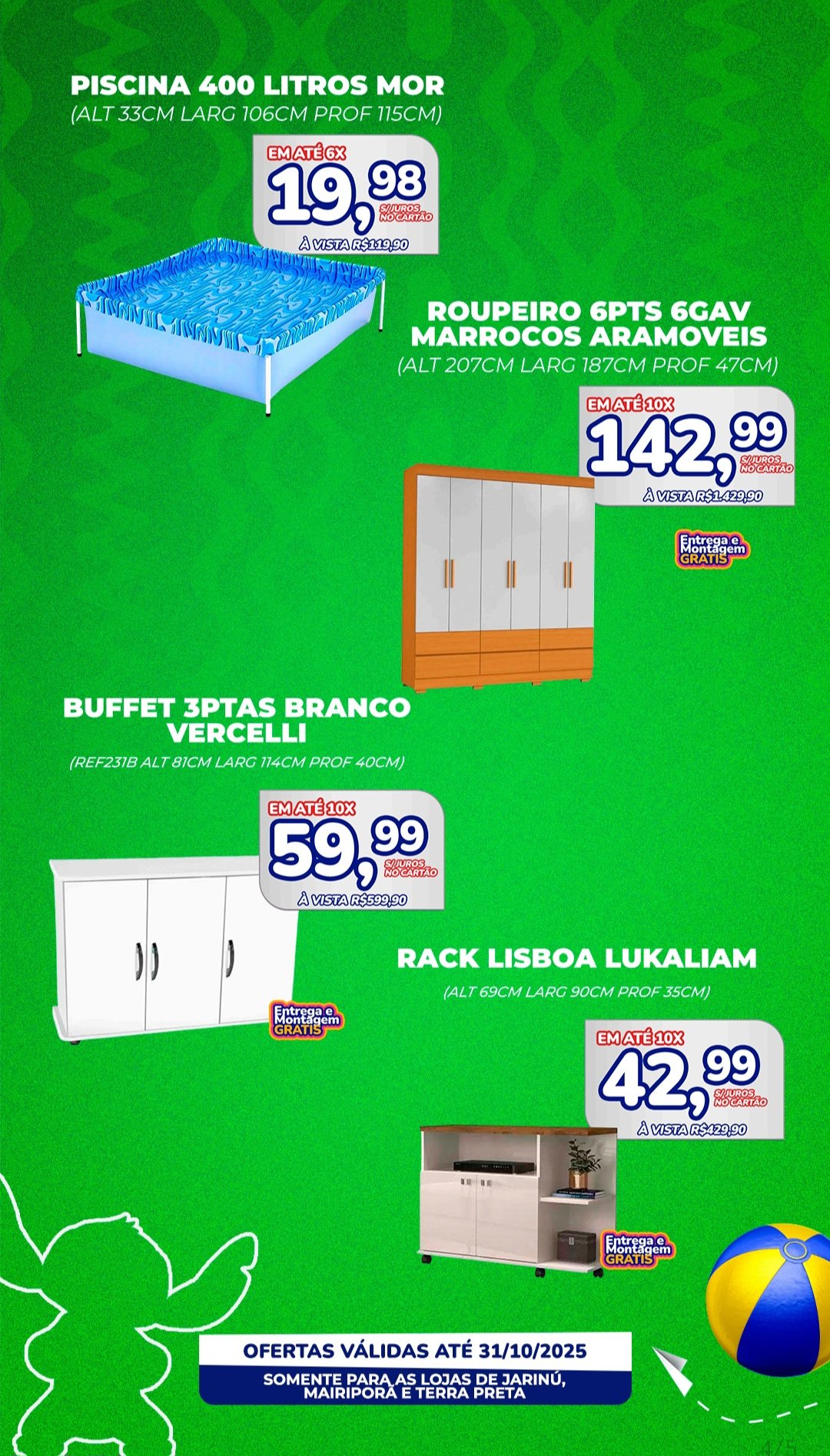 Variedade, preço bom, não cobra frete nem a montagem e ainda tem desconto! desse jeito nunca mais concorrência.